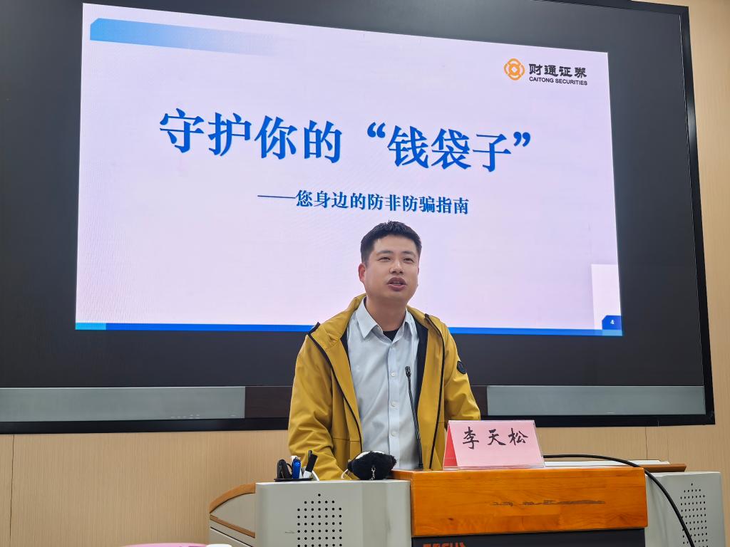 交流会上,李天松围绕两大主题展开分享。首先,他结合“投资者教育进百校”公益活动要求,以“守住‘钱袋子’,防范金融诈骗”为主题,系统讲解金融诈骗的防范技巧。针对当前高发的代客理财诈骗、收费荐股诈骗等类型,他深入剖析了诈骗分子的作案手法与识别要点,着重提醒同学们提高警惕、增强防范意识,明确告知同学们若遭遇电信网络诈骗,可立即拨打96110反电信网络诈骗专用号码寻求帮助,切实守护自身财产安全,践行金融公益教育理念。