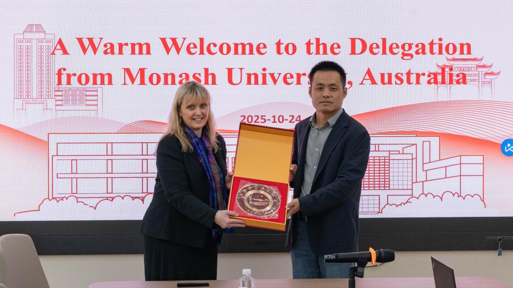 浦徐进对代表团的到访表示热烈欢迎。他指出,近年来学院与莫纳什大学合作紧密,中外合作办学的规模与层次取得了显著成效。他希望双方进一步拓展合作领域,力争在科研合作、师生互访交流等方面实现新的突破。刘舒皎就学院的办学规模、学科建设、国际交流工作等相关内容做具体介绍,并重点汇报了学院与莫纳什大学在中外合作办学项目上的发展历程与学生培养成果。Carla Wilkin对商学院的热情接待表示感谢,并对学院在国际化人才培养中发挥的重要作用以及中外合作办学项目学生取得的优异成绩给予了充分肯定。她指出,两校目前已奠定了坚实的合作基础,未来将持续深化在工商管理、大数据管理与应用专业领域的高质量发展,共同推动战略伙伴关系迈向新台阶。