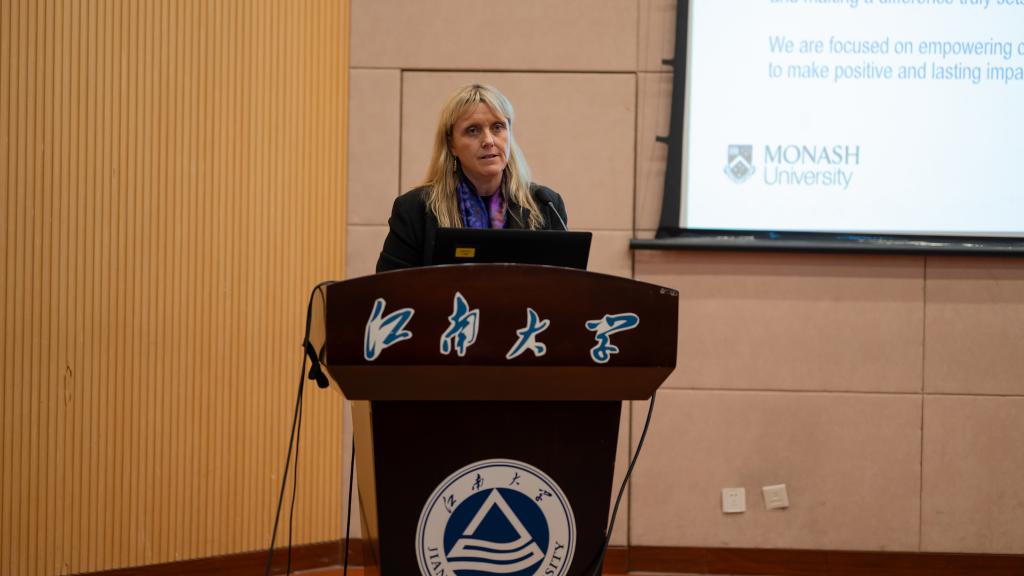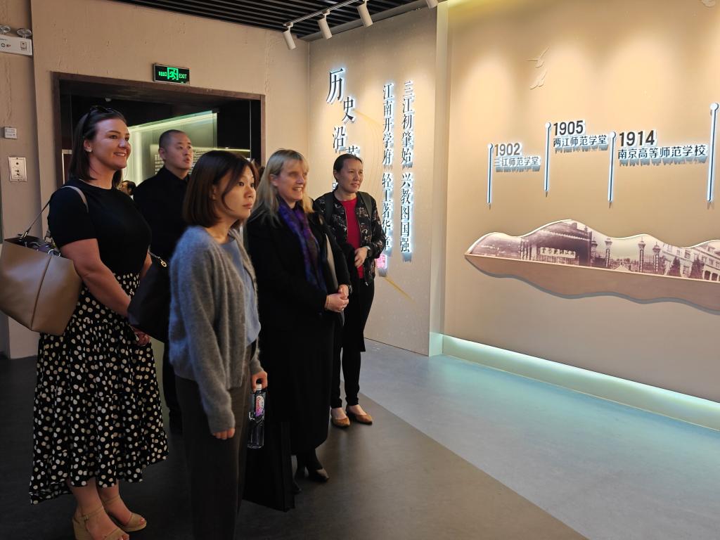 会上,双方围绕下一阶段的工作重点,就年度工作部署、教学安排与课程体系优化等议题深入交流,并重点讨论了师资外派的长效机制。会后,浦徐进向Carla Wilkin赠送学院40周年文创纪念品。代表团一行在校方陪同下还参观了江南大学校史馆,深入了解了学校的发展历程与办学成就
