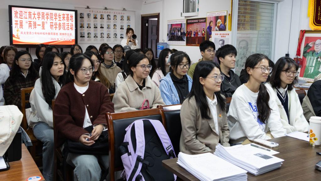 10月22日下午,商学院第50期发展对象培训班全体同学一同前往无锡市关工委风光里青少年标杆校外教育基地,学习“两弹一星”精神,开展党校培训实践活动。基地姚炳华、杨永康、孟佰森、华桂林、苏明兴等五位老同志热情接待。活动由基地主任姚炳华主持。