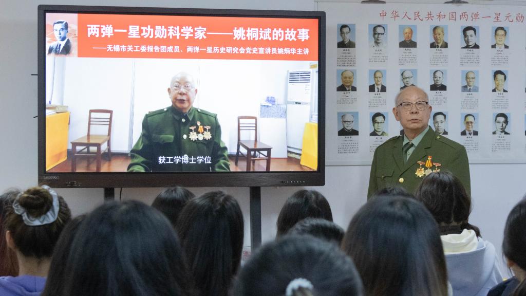 姚炳华前辈生动讲述了两弹一星功勋奖章获得者姚桐斌的生平事迹。从贫苦出身、艰难求学到四次改命,从在瑞士加入中国共产党到归国后率领703研究所取得重大科研突破......姚桐斌光辉的一生,是“两弹一星”奋斗精神的生动写照。讲述中,姚炳华前辈还通过现场提问,引导同学们深入思考“两弹一星”的深刻内涵。