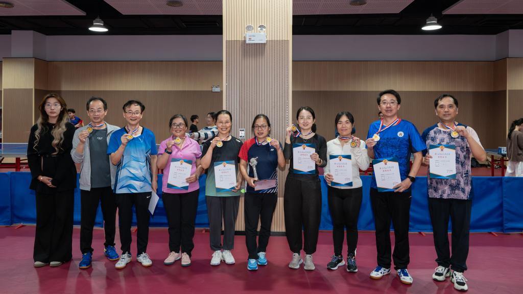 比赛设置男子单打、女子单打、男子双打、女子双打、混合双打五个项目,以团体赛形式进行。小组赛采用单循环积分赛,根据小组赛获得的积分,两组分别取前两名进入前四名排位赛。比赛现场,师生校友同台竞技,气氛热烈。教工队依托深厚功底,彰显精湛技术与稳健战术部署;学生队伍则以迅疾攻势,焕发青春一代的蓬勃活力。每到精彩对局,引得观众阵阵喝彩,充分展示出乒乓球运动的魅力。