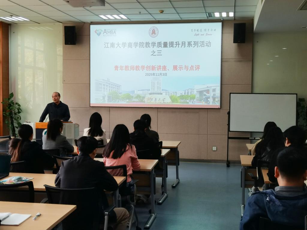 10月-11月,江南大学商学院以“创新、融合、赋能——打造商科教学新生态”为主题,组织开展了为期一个多月的教学改革系列活动,涵盖基层教学组织提质工程、课程组建设研讨、教学创新讲座、展示与研讨等多个板块。全院教师共计200余人参与,通过理论研讨、实践分享与互动交流,共绘商科教育高质量发展蓝图。