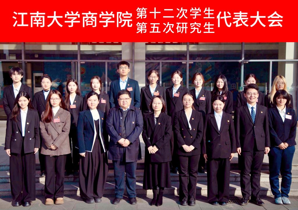 经商学院第十二次学生代表大会全体会议民主投票选举,杨运蕊、周涵秋、潘思奕3名同学(按姓氏笔画排序)当选新一届江南大学商学院学生会主席团成员,刁子芮、王赢傅雅、王欣雨、王静云、石爱璇、刘亦菲、刘文灿、杨运蕊、周涵秋、顾苗苗、梅婷瑜、潘思奕等12名同学(以上排名不分先后)当选第十二届学生会委员会委员。经商学院第五次研究生代表大会全体会议民主投票选举,王楠歌、许经欣、孙林平3名同学(按姓氏笔画排序)当选新一届江南大学商学院研究生会主席团成员,王楠歌、许经欣、孙林平、李思诺、张晴、陈张彤、陈佳巍、孟凡莉、孟婷婷、赵定轲、黄思媛、崔红瑞等12名同学(以上排名不分先后)当选为第五届研究生会委员会委员。