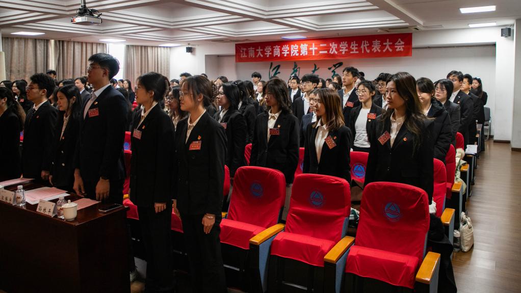 闭幕式上,江南大学商学院全体代表通过了大会决议,并向学院本科生、研究生发出倡议。大会号召广大青年学子要筑牢思想根基,强化引领效能,夯实组织基础,聚焦服务核心,为实现中华民族伟大复兴的中国梦贡献青春力量。最后,在嘹亮的《国际歌》歌声和热烈的掌声中,江南大学商学院第十二次学生代表大会、第五次研究生代表大会闭幕。