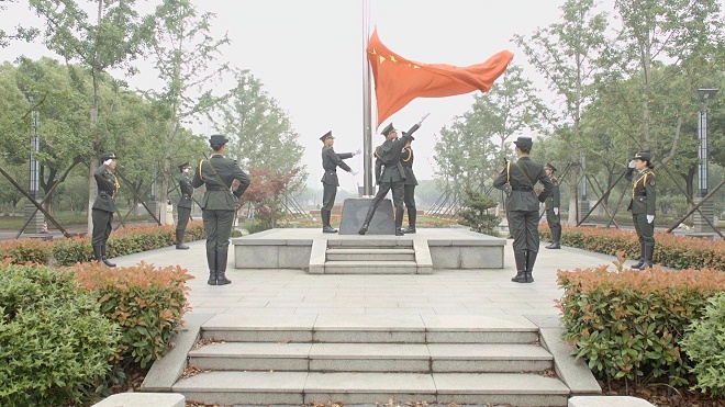 “出旗!”校园清晨的宁静被嘹亮的口号声划破,江南大学国旗班卫士迈着铿锵有力的步伐,整齐划一地走上国旗台,伴随着庄严的<义勇军进行曲>,五星红旗冉冉升起。在场师生全体肃立,目光坚毅,以表达内心对国旗的崇高敬意,对祖国的敬仰之情。