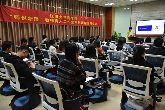 为进一步提升商学院学子人才培养质量,充分发挥学院优秀师表典型思想引领作用,商学院整合现有资源于今年设立“师说新语”教师育人工作室。10月31日下午,“师说新语”教师育人工作室系列讲座启动仪式在商学院117室成功举行。商学院党委副书记、副院长李荣华,商学院金融系教授谢玉梅出席仪式,学院四十余名学生参加活动。仪式由商学院辅导员石可婧主持。