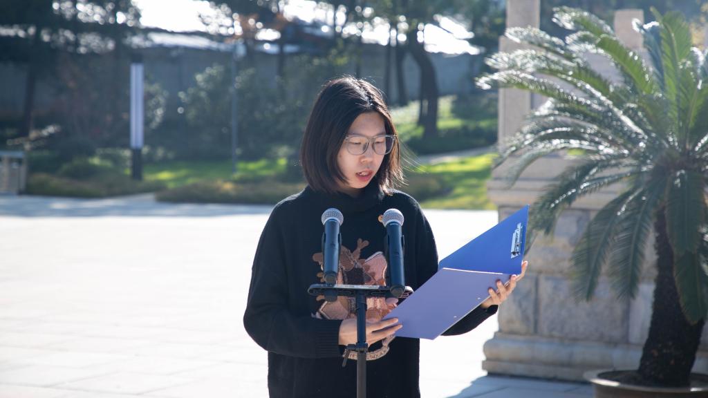 梅金超从历史、现实、使命三个维度切入,深刻阐释了传承先烈精神的时代价值与担当民族复兴大任的内在要求。他结合无锡本地的革命历史与当前复杂的国际形势,以鲜明的立场阐明了捍卫国家主权与安全的坚定决心。同时他向青年学生提出了践行时代使命的实践路径,勉励青年学生要铭记历史、居安思危,与祖国共奋进、与时代同步伐,将青春汗水挥洒在民族复兴的伟大征程上。最后,他带领参加活动的全体人员庄严宣誓:“强国有我,请党放心!”
