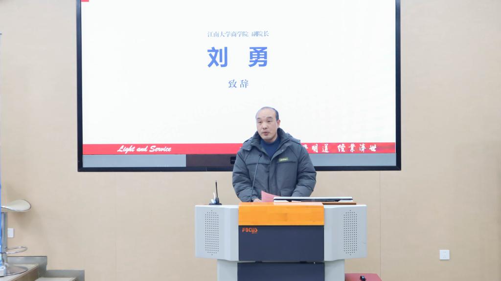 随后,刘勇代表商学院对工商银行各位领导嘉宾的到来表示热烈欢迎,对学院竞赛组织工作得到认可表示感谢。他指出,商学院始终注重培养学生的创新精神与实践能力,“工行杯” 全国大学生金融科技创新大赛,为同学们提供了一个将所学知识转化为实际成果的舞台,鼓励大家在实践中探索、在竞赛中成长,培养团队协作精神和解决实际问题的能力。他鼓励同学们积极参与大赛,勇于挑战自我,在实践中不断提升专业素养与综合能力。