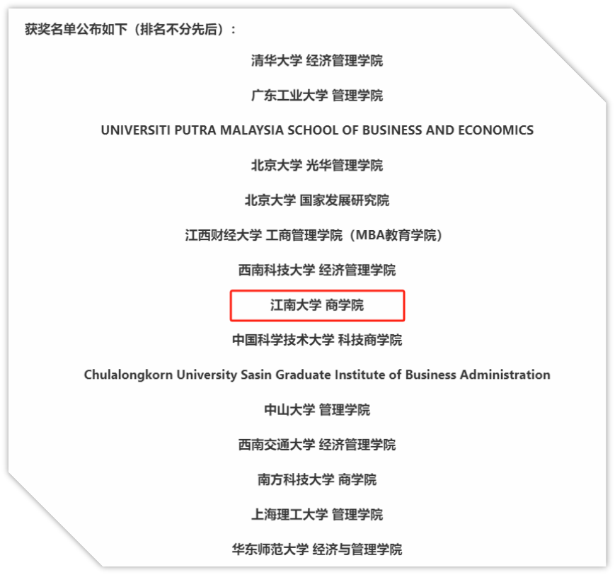 在备受瞩目的亚洲商学院颁奖典礼中,江南大学商学院荣获2025年度“亚洲商学院创新型商学院”。这一奖项聚焦亚太地区商科教育创新实践,旨在表彰在商科教育领域实现系统性突破的先锋院校。