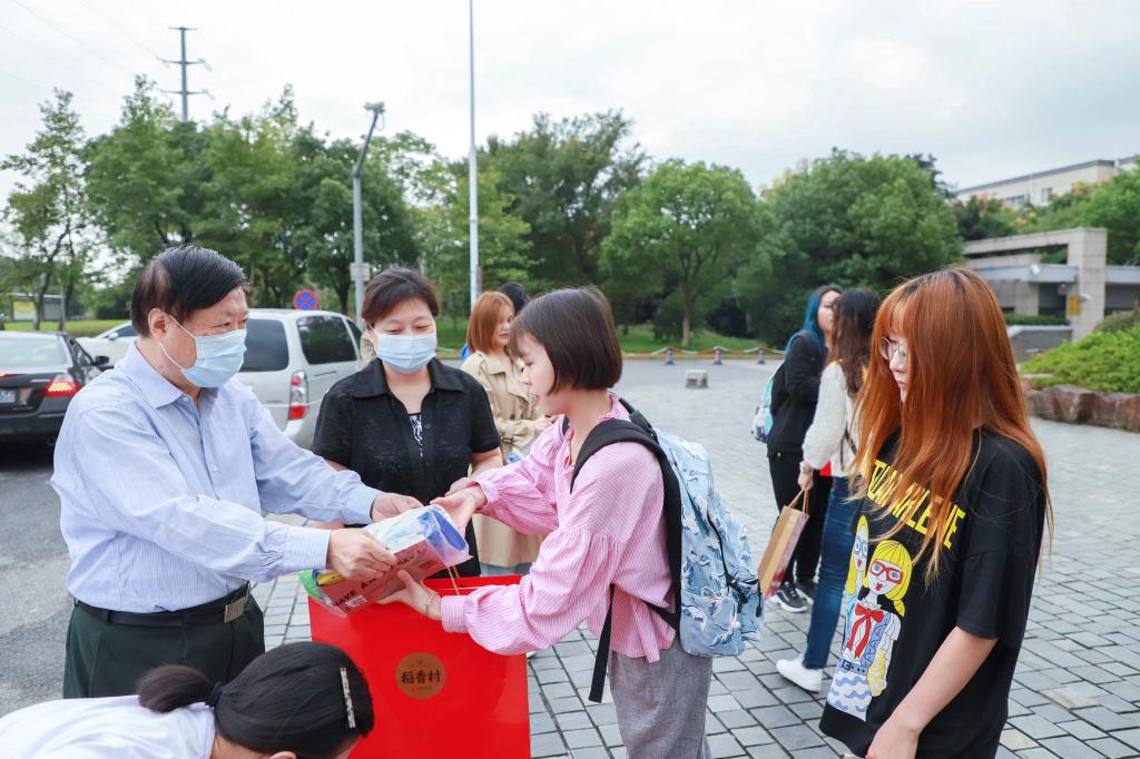 疫情不减关爱情,金秋十月迎中秋。虽仍处于后疫情时期,但军休干部们对青少年的关怀之情从未“隔离”。9月23日下午,无锡市军休中心关爱小组联合无锡市惠龙军休所、无锡市惠峰军休所,开展了江南大学商学院少数民族学生中秋慰问活动。为严格落实学校疫情管控规定,本次慰问在学校东门外进行。军休中心主任陶延凤、军休中心副主任黄芳、惠龙军休所所长冷冰、惠峰军休所所长毕红星、江南大学商学院党委书记张海峰、江南大学商学院党委副书记兼副院长徐静出席活动,来自各军休所的支部书记、工作人员、商学院辅导员及20位少数民族学生代表参加活动。