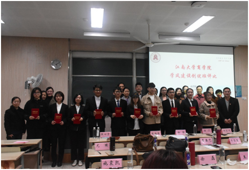 在学风建设创优班评选活动中,各班代表从班级日常管理、学风建设经验、班团一体化以及班级特色等方面进行展示,显示出优秀班级的表率作用,弘扬了“笃学明道,经业济世”的院训精神。