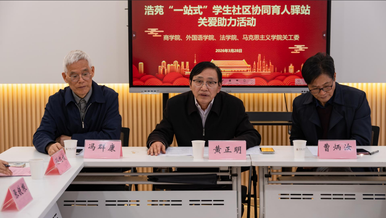 为深入推进关工委融入“一站式”学生社区协同育人工作,凝聚多方育人合力,协同助力学生成长成才,3月28日下午,浩苑“一站式”学生社区协同育人驿站关爱助力活动在浩苑“一站式”学生社区举办。江南大学关工委副秘书长黄正明,商学院关工委常务副主任冯群康及关工委教师曹炳汝、强心宇,马克思主义学院关工委主任张铁根、常务副主任张云霞,法学院关工委主任顾云艳、常务副主任杨杰,外国语学院关工委主任滕飞以及各学院相关工作辅导员和学生代表参加活动。活动由商学院辅导员孙旭媛主持。